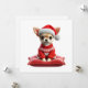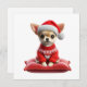 Cautiva a tus seres queridos con este adorable Chihuahua con un suéter rojo festivo y sombrero de Santa, posado en una almohada acogedora. Una tarjeta emotiva para la temporada navideña.