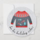 Adorable suéter feo de Navidad en colores festivos con tipografía que dice ‘ho ho ambiente navideño’. Personalizable fácilmente en la parte posterior con el nombre de la familia y el mensaje del disfraz.