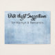 Aquí hay un accesorio divertido para recoger para su fiesta de compromiso o ducha conjunta: tarjetas de sugerencia de noche de cita en las que los huéspedes pueden escribir notas personales a la novia y al novio. En el frente lees "sugerencias de la noche de la fecha" en un elegante, audaz y moderno tipo de letra de guión; este tipo de letra es editable para que puedas elegir otro si lo prefieres... o incluso escribir un mensaje diferente. Debajo hay un lugar para sus nombres. Todas las palabras se presentan en color negro. Tanto la parte delantera como la trasera de la tarjeta estaban cubiertas con una textura de grunge sutil y angustiada de azul bonito. La parte trasera se dejó sin palabras, proporcionando un espacio para notas personales escritas a mano más largas que sus invitados deben proporcionar. Por favor, no dudes en contactarme si tienes solicitudes especiales o necesitas otros artículos. También estoy contento de ayudar con la personalización de estas tarjetas si lo necesitas. // Diseñado por Melody Watson para la Muserie del Papel