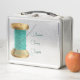 Guarde sus agujas, hilos, botones y otros materiales de coser en esta caja personalizada con su nombre y un charco de hilo con aguja.
