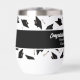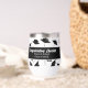 Fiesta de graduación en blanco y negro, gorras de graduación negras tiradas al aire tanto para él como para ella. Bonita fiesta de graduación copa de vino blanco y negro para una celebración para un graduado de una escuela secundaria, universidad o universidad con colores escolares de blanco y negro. Personaliza con el nombre, clase y nombre de la escuela de los estudiantes graduados.