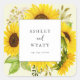 Estos sellos para sobres bodas de color amarillo girasol son perfectos para un boda rústico. El diseño clásico moderno incluye hermosas acuarelas amarillas brillantes con un tema vintage de verano o otoño. Personalice la etiqueta con los nombres de la novia y del novio.