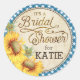 Flores de sol con fondo azul gingham de fondo rústico diseño rústico de etiqueta de ducha de novia de picnic de campo.