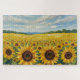 Puzzle with a beautiful sunflower landscape under a soft, cloudy sky, perfect for relaxing, decorating, or gifting to someone who loves nature. The warm colors and tranquility make it a design that conveys peace, warmth, and natural beauty.
