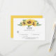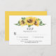 Un grupo de girasoles soleados de color amarillo domina este RSVP. Los cuadros de plantilla de texto son fáciles de personalizar con su propia información. ¡Asegúrate de cambiar la respuesta por fecha! ***NOTA*** Si necesita ayuda con esta invitación o para solicitudes de personalizado, necesita mi ayuda, no coloque esta mercancía en su carrito. En su lugar, envíeme su solicitud por correo electrónico a shutterbug600@yahoo.com. Soy un diseñador independiente que hace una lista de mi trabajo a la venta a través de Zazzle; sin embargo, cumplen todos los aspectos de la fabricación y envío de dichos diseños. No tengo acceso a tu cuenta y no puedo ver lo que has hecho. Las respuestas a sus consultas se pueden encontrar en https://www.zazzle.com/about/ask Haga clic en el enlace para que las preguntas sobre su pedido o envío puedan ser respondidas por los maravillosos miembros del equipo de Atención al Cliente de Zazzle. Teléfono: 1-408-983-2800 Horas de teléfono: Lunes - Viajero: 9AM - 1PM PT (12PM - 4PM ET); 1-888-8ZAZZLE (1-888-892-9953) Horas de teléfono: Lunes - Videos: 9AM - 2PM PT (12 PM - 5 PM ET). Además, CHAT no está en vivo, pero trato de responder en 24 horas.