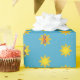Este diseño de Suns in Shades es de lo que se hacen los sueños de verano. Los soles amarillos y naranjas, cada uno de ellos colorido sobre un gradiente, están separados por igual contra un hermoso cielo azul. Algunos de los soles tienen gafas de sol rojas, azul-violeta o verdes. Somos especialmente parciales con los sol con gafas de sol; pueden parecer geniales pero en realidad solamente están cuidando sus ojos. Este alegre diseño es especialmente bueno para celebrar los cumpleaños de los niños.