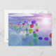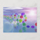 Un paisaje marino de ciencia ficción en 3D creado en Vue, que representa una puesta de sol rosa claro y lavanda detrás de una estructura de esferas multicolores como átomos gigantes que se deslizan en un mar azul pálido.
