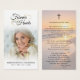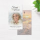 Keep the memory of a loved one close with this custom image personalized prayer card featuring a cherished photo, the sentiment FOREVER IN OUR HEARTS in an elegant calligraphy script typography design, name and dates on the front and the editable poem "Footprints In The Sand" or your heartfelt message, quote or bible verse accented with a simple cross on the back overlaid on a beach sunset photo or change to an image that represents your loved one best. With its simple yet elegant classic design and modern script typography, it makes a meaningful keepsake to share at a funeral, memorial service or Celebration of Life and offers comfort and a lasting tribute for family and friends. Its small and portable size of 3.5x2" (wallet-sized) makes it convenient for loved ones to carry it with them as a reminder of your loved one’s life and spirit. Personalization makes each card unique.