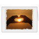 Tarjetas con puesta de sol muy románticas con manos en forma de corazón. *cortesía de jami wright/diseñado por janet palaggi