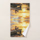 Sunset on the dock on the lake. This boy relaxes on the dock with his dog while they watch the sunset over the lake. A sailboat sails away in the distance.