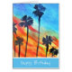 Playa de sol con palmeras, arte original de Sacha Grossel. La puesta de sol roja y naranja sueña el arte temático de la playa en un estilo acuático original. Tema de la puesta de sol en el surf.