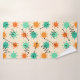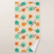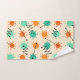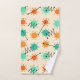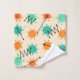 Un patrón retro inspirado en el estilo de arte moderno de mediados de siglo, con sombrillas abstractas en líneas naranjas y turquesas y negritas en negro.