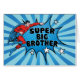 Ser un hermano mayor es muy especial. Este héroe volador vestido de rojo está lleno de superpoderes de gentileza, amabilidad y ayuda - solamente las cualidades correctas para el recién nacido en la familia. Fondo basado en la imagen de Vecteezy.