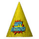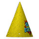 El gorra fiesta de polka polka amarillo y negro presenta Happy Birthday Word Art Graphic. Fácil de montar. Este patrón de puntos se coordina con la Colección de Fiestas Superhéroes en nuestra tienda, así como con la mayoría de las fiestas de cumpleaños temáticas Superheroes. También disponible en nuestra tienda sin el gráfico de cumpleaños feliz.