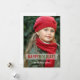Tarjeta de foto de vacaciones moderna con superposición de texto en negrita rojo y verde. ELKE CLARKE© Diseño versátil para agregar su imagen, su nombre y año, en una fuente de texto retro, y enviar a familiares y amigos durante las vacaciones. Patrón de rayas verdes y blancas en la parte posterior. Otros colores disponibles. "Felices Fiestas"