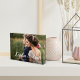 Elegante bloque de fotos de bodas muestra tu foto boda horizontal o paisajista favorita. Sus nombres aparecen en la letra manuscrita blanca de moda como una superposición de texto con la fecha boda debajo.