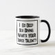 Divertido eslogan en una taza que dice "Voy a bucear en el mar profundo. ¿Cuál es tu gran talento?". Dos tazas para un buzo de Scuba. Texto en negrita en blanco y negro.