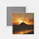 Imán fotográfico de recuerdo con un cálido amanecer naranja sobre la isla de Mokulua en la playa de Lanikai, Oaha, Hawaii, Estados Unidos.