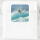 Foto pegatina de un surfista profesional navegando en su tablero sobre una gran ola en el Gasoducto Banzai, North Shore, Oahu, Hawaii.