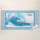 Esta toalla de playa representa a un surfista montando una gran ola y puedes personalizar la toalla con un nombre u otro texto antes de añadirla a tu carrito.