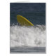 Imagen de una tabla de surf amarilla que sale de las olas después de un apagón.