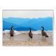 Una representación digital de tres Geeses de Canadá contemplan dirigirse hacia el surf entrante a la orilla del lago Pend Oreille en Sandpoint, ID; las montañas azules están a lo lejos.