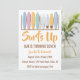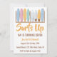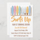 Disfrute de una ola radical de diversión con nuestras invitaciones de fiesta de cumpleaños "Surfs Up" en la playa. Estas invitaciones son perfectas para crear una celebración espléndida de verano. Prepárate para colgar diez pesos con un diseño que incluye gráficos de surf y vibraciones oceánicas. ¡Es la forma perfecta de hacer un chapoteo e invitar a tu equipo a una fiesta de cumpleaños que nunca olvidarán!