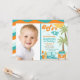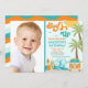 Invitación del primer cumpleaños de Surf The Big One Surf Beach para el cumpleaños de un niño surfista con foto de Surf Beach Surf's Up Birthday Invitation