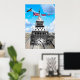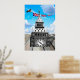 Poster de pared / Impresiones: Obra de arte surrealista que retrata el famoso monumento londinense - La torre del reloj Big Ben bajo el luminoso y soleado paisaje de "playa como vacaciones de ensueño" con un avión que jalaba Union Jacks (Bandera Británica) por el cielo.
