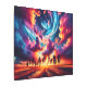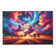 Esta obra de arte digital captura una escena impresionante de una vorágine de nubes agitada contra una puesta de sol vibrante. El llamativo contraste entre los naranjas feroces y el azul frío crea un efecto hipnotizante, mientras que la silueta de los árboles delimita la composición. La imagen evoca una sensación de asombro y muestra el poder de la belleza de la naturaleza tal como se interpreta a través de los medios digitales.
