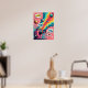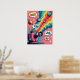 Este poster te transporta a un mundo donde la nostalgia se encuentra con el surrealista, centrado en una clásica cámara retro polaroide que actúa como una máquina de ensueño. En lugar de capturar recuerdos, expulsa un caprichoso "desfile cósmico" de planetas, lunas y cuerpos celestes a rayas de caramelos vibrantes. Esta obra de arte es una fusión magistral de estilos, que combina los colores audaces y ultraturados y la línea nítida del arte pop con un concepto surrealista que desafía la realidad. Toda la escena está anclada en una estética moderna de los años 60, con un fondo de bloques de color y estallidos juguetones que le dan un toque vintage distintivo. El resultado es una pieza que cautiva visualmente y que es perfecta para añadir un toque de energía peculiar y creativa a cualquier espacio.