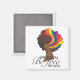 Este imán es de mi línea Hers and Hers. Es una imagen de una mujer afroamericana. Ella tiene el pelo natural, con rayas arcoiris. Las franjas de arco iris representan la bandera LGBT.