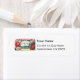 Sello de dirección personalizado con bello arte victoriano vintage de un par de elegantes cisnes blancos flotando en un lago enmarcado por rosas rojas y flores rosadas olvidadas-no-me-flores.