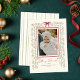 ¡Trae alegría festiva a sus saludos de vacaciones con esta encantadora tarjeta de fotos de navidad acuática! Con un diseño clásico pintado a mano con elegantes guirnaldas y un hermoso arco rojo, es la combinación perfecta de estilo atemporal y magia navideña. Personalice con su propio nombre y foto favorita para crear una tarjeta única y alegre que sus amigos y familiares apreciarán.