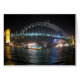 Sydney Harbour Bridge por la noche - tarjeta de felicitación en blanco. Personalizable completo. El Sydney Harbour Bridge es un puente de acero a través del arco que atraviesa el puerto de Sydney y que transporta el tráfico ferroviario, vehicular, de bicicletas y peatonal entre el distrito central de negocios de Sydney (CBD) y la costa norte. Las espectaculares vistas al puente, al puerto y a la cercana Ópera de Sydney son una imagen emblemática tanto de Sydney como de Australia. El puente es conocido localmente como "The Coat Hanger" por su diseño en forma de arco.