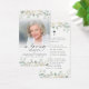 Keep the memory of a loved one close with this custom personalized prayer card featuring one cherished photo, the sentiment FOREVER IN OUR HEARTS, name and dates and an editable prayer you can change to a meaningful custom message, poem, quote or bible verse accented with a simple cross and soft watercolor white flowers and greenery. It makes a meaningful keepsake to share at a funeral, memorial service, visitation, wake or Celebration of Life and offers comfort and a lasting tribute for family and friends. Its small and portable size of 3.5x2" (wallet-sized) makes it convenient for loved ones to carry it with them as a reminder of your loved one’s life and spirit. Personalization makes each card unique.