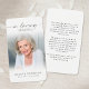 Keep the memory of your loved one close with this personalized prayer card featuring a beloved photo, the sentiment IN LOVING MEMORY, name and dates and an editable heartfelt remembrance message your can change to a meaningful poem, prayer, bible verse or quote. With its simple yet elegant design and modern script typography on your choice of background color (shown in white), it makes a cherished keepsake to share at a funeral, memorial service, visitation, wake or Celebration of Life and offers comfort and a lasting tribute for family and friends. Its small and portable size of 3.5x2" (wallet-sized) makes it convenient for loved ones to carry it with them as a reminder of your loved one’s life and spirit.