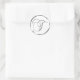 T Monograma Sobre Plata Faux O Sello Favor. Estos pegatinas redondos clásicos están impresos con tinta no metálica en un pegatina plano para que parezca plata. No son biselados ni monogramos grabado en relieve, pero están diseñados para parecer biselados o monogramas grabado en relieve. Estos sellos monográficos plateados se imprimen sobre un fondo blanco a menos que seleccione un fondo de color diferente antes de proceder a la desprotección. Además de ser artículos de papelería para bodas bonitos, estos elegantes sellos para sobres de invitación a la boda también hacen grandes sellos de tarjetas para personalizados monogramados, pegatinas de sello para sobres de tarjetas de felicitación de vacaciones personalizadas y pegatinas de sellos monográficos de tarjetas de Navidad personalizadas.
