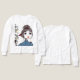 A stylish white long-sleeve shirt featuring a minimalist illustration of a girl surrounded by leaves, birds, and soft nature elements. The blue palette and hand-drawn art give it a calm, artsy, and modern aesthetic. Perfect for creative fashion lovers, cottagecore fans, and anyone who loves unique graphic apparel. Great for fall outfits, gifting, and Pinterest-inspired wardrobe ideas.
