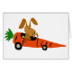 El conejo de conejito lindo hilarante que conduce un diseño anaranjado del dibujo animado de la zanahoria es único y diversión y una gran idea para un regalo. Él es lleno de personalidad. Puede también añadir el texto de encargo y cambiar color de fondo (el personalizar del tecleo, después corrige, entonces fondo) al ordenar.