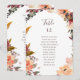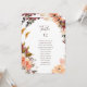 Esta tabla de asientos con número de mesas de naranja burdeos es perfecta para su boda rústica de boho, verde oscuro y jardín dorado. El diseño presenta una corona o un ramo de melocotón de color minimalista, rosa polvoriento, flores violetas y rosa claro, además de una vegetación de cobre, verde perenne, amarillo y rojizo. Las flores en este diseño son amapola, rosa y peonía. El diseño es ideal para una simple y elegante boda campestre de primavera, verano o otoño. Encontrará otro material de boda que coincida o coordine en el resto de esta colección.