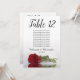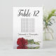 Estas hermosas tarjetas numerales facilitarán a los clientes la posibilidad de encontrar sus asientos en la recepción de su boda. Presentan un diseño sencillo pero elegante con letras caligráficas de guión y una única rosa roja de tallo largo sobre su lado reflejando en el agua. La tarjeta incluye una tabla de asientos con 10 nombres. También hay espacio para los nombres de la pareja y la fecha de boda. Esta tarjeta está disponible en varios tamaños y es más grande que nuestras tarjetas de número de tabla estándar.