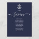 Estas tarjetas de gráfico de asientos de número de mesa doble náutico azul marino elegantes presentan un ancla de barco y son perfectas para todas las celebraciones. Diseñadas por Thisisnotme©