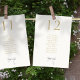 Esta bonita tarjeta de asiento de mesa blanca y blanquecina cuenta con una bonita cinta blanca de color agua y una letra falsa de color oro. El diseño tiene capacidad para 10 comensales por mesa, pero puede acoger hasta 12 personas como máximo. El diseño se repite en la parte posterior para una visibilidad fácil desde todos los lados de la mesa. Añadir cada signo con el número de asiento individual al carro.