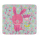 Bunnies y flores rosadas diseñan artículos para el hogar, la oficina y el uso personal, incluyendo mousepads, espejos compactos, carteras, relojes, tablas de borrado en seco, altavoces y muchos otros artículos. Flores de bonito rosa, blanca y amarilla sobre un fondo azul con un conejo rosa brillante.