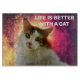 Retrato de un lindo y adorable gato calico con ojos verdes, nariz rosada y pieles multicolor. El hermoso mascota mira directamente a tus ojos. Una pintura digital de una fotografía. Elegante y divertida tabla de corte elegante para ti. ¡Personalizable. Puede cambiar la imagen. Puede utilizar la imagen de su propio gato en lugar de la imagen de plantilla si lo desea. También puede cambiar o eliminar el texto de la plantilla VIDA MEJOR CON UN CAT. Puede transferir este diseño a una variedad de otros productos de su elección. Por favor, utilice el botón "Editar diseño" o "Personalizar" (como puede ser el funda) para ajustar la imagen a la forma del producto en particular. Le transferirá a la Herramienta de diseño. Utilice la opción "Ajustar/Rellenar" (menú del lado derecho de la Herramienta de diseño). Puede escalar, rotar, voltear la imagen en la plantilla de producto y puede agregarle algún texto propio. También puede cambiar el tipo, el tamaño, el color y la ubicación del tipo de letra. Solo sé creativo, cómprate uno, diviértete y sé feliz!