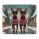 This festive design captures the joyful spirit of the holiday season, featuring an adorable dogs.Nestled in a winter wonderland, complete with a decorated Christmas tree, and beautifully wrapped presents. Snowflakes gently fall, adding a magical touch to the scene, while the vibrant colors of the holiday decorations create a warm and cheerful atmosphere.