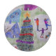 ¡Las vacaciones son tan divertidas! Como se puede ver en esta vibrante acuarela, los residentes del Navidad Village están disfrutando en una helada tarde de invierno patinando en el estanque congelado. Un enorme árbol de Navidad ha sido decorado con baudias coloridas y oropeles brillantes y una brillante estrella colocada en la parte superior. Todas las casas están pintadas en vivos colores pastel, creando una maravillosa escena de nieve de temporada.