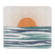 Resumen ilustracion de la salida del sol con sol naranja y decoración de olas de mar azul, blanco y turquesa