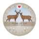 Celebra el día de la boda o el aniversario de tu novia y novio favoritos amantes de la naturaleza con este personalizable. Ramas blancas y pájaros de fondo de piedra rodean a un par de ciervos de cola blanca que están pensando en un corazón. Los nombres de las parejas y la fecha de boda aparecen cerca del centro y pueden ser personalizados.